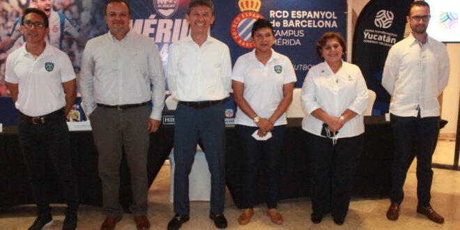 Lo anunciaron las y los titulares de Panteras “La nueva escuela de fútbol”, Claribeth Rosas Jaimes; el Instituto del Deporte (IDEY), Carlos Sáenz Castillo; ID Sports México, Alfonso Ceballos Granados; la casa de estudios, Nancy Durán Solís, y Deportes del Ayuntamiento de Mérida, Jesús Aguilar y Aguilar.