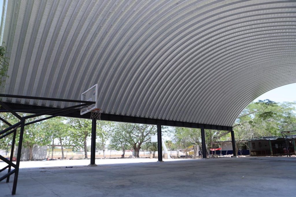 Umán, Yucatán a 10 de Junio de 2023.- Estudiantes del COBAY plantel Umán terminarán el curso estrenando la construcción de un nuevo domo y la rehabilitación de la malla perimetral para que pueden realizar sus actividades con mayor seguridad.