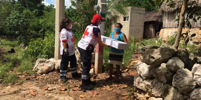 Organizados en dos grupos por el coordinador Estatal de Socoros Fernando Estrada Novelo y el coordinador Estatal de Restablecimiento del Contacto entre Familiares José Antonio Estrella Castro, los voluntarios descargaron los camiones en las comisarías y recorrieron las viviendas con los paquetes de aseo en donde recibieron muestras de agradecimiento por parte de los habitantes.
