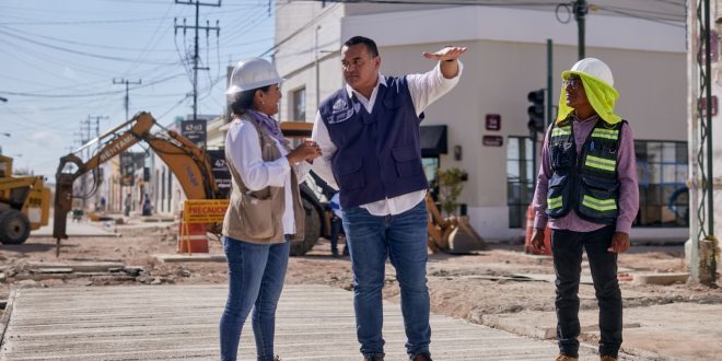“Además, en ese mismo tramo ya se encuentran en sus respectivos ductos los servicios de telefonía, gas natural, agua potable y líneas eléctricas, lo que ha permitido la colocación de los tabiques con acabado de tipo pórfido y de las baldosas tipo basaltex que el Ayuntamiento instalará como distintivo de las calles que unirán el Gran Parque de la Plancha con el inicio del remate de Paseo de Montejo”, expresó.