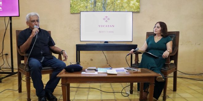Durante el conversatorio, moderado por la también escritora Gloria García Sosa, se refirió también a sus vivencias en Tekax, municipio del que es oriundo, y que seguramente forman parte de las historias que ha escrito, aunque no de forma consciente.