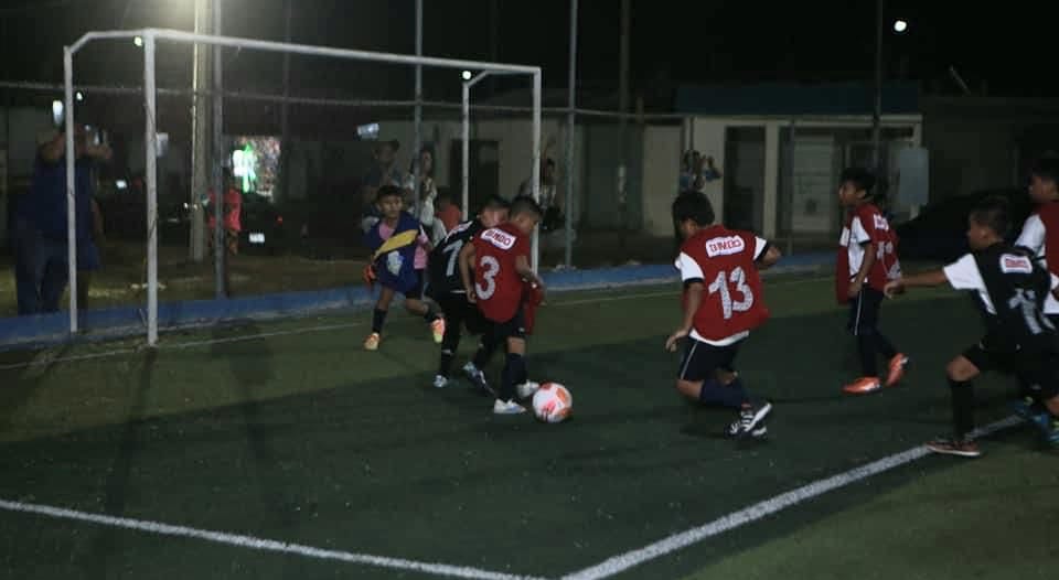 KANASÍN, Yucatán a 24 de junio 2023.- Decenas de familias asistieron la noche de ayer viernes a las canchas de fútbol de Villas de Oriente para acompañar a sus hijos en la final del torneo interno de futbolito Kanasín, evento en el que participaron 10 escuelas (equipos) del municipio.