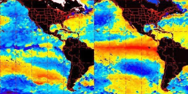 La Niña —fase fría del fenómeno climatológico El Niño Oscilación del Sur (ENOS)— también se caracteriza por el descenso de, al menos, 0.5 grados Celsius por debajo del promedio trimestral de la TSM.