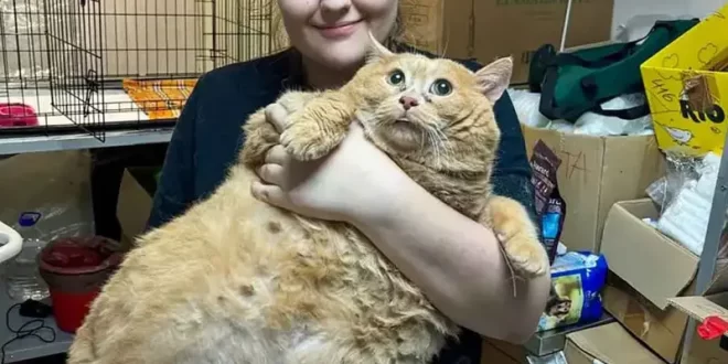 Conocido como Kroshik, que significa “migajas” en ruso, este minino se volvió viral tras ser rescatado de un sótano en un hospital ruso, donde había engordado tras comer sobras, galletas y sopa, acumulando un impresionante peso de 17 kilos.