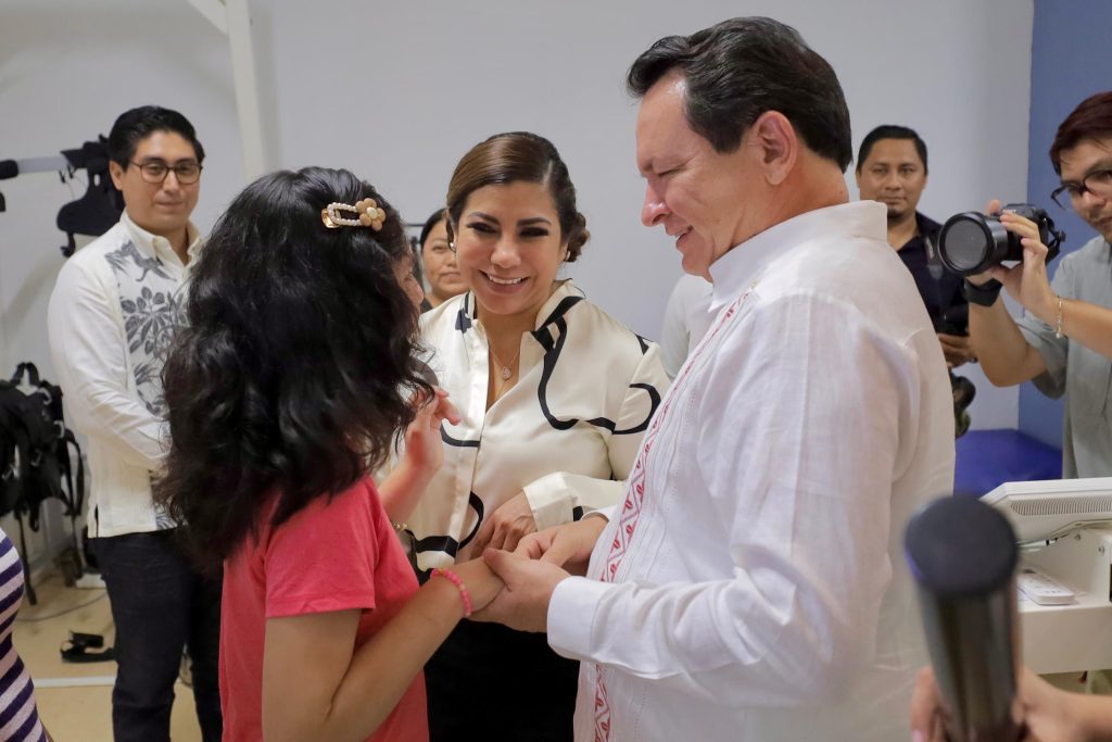 Mérida, Yucatán, a 3 de octubre de 2024.- El Gobernador Joaquín Díaz Mena, acompañado de su esposa, la maestra Wendy Méndez Naal, realizó una visita al Centro de Rehabilitación y Educación Especial (CREE), que atiende a alrededor de 6,300 personas con discapacidad al año, brindándoles terapias de rehabilitación física, ocupacional y de lenguaje.