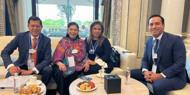 -En el marco de la misión comercial que encabeza por Medio Oriente, Vila Dosal sostuvo encuentros con directivos del Foro Económico Mundial, de la Digital Cooperation Organization, así como con empresarios de diversas partes del mundo y con diplomáticos mexicanos.