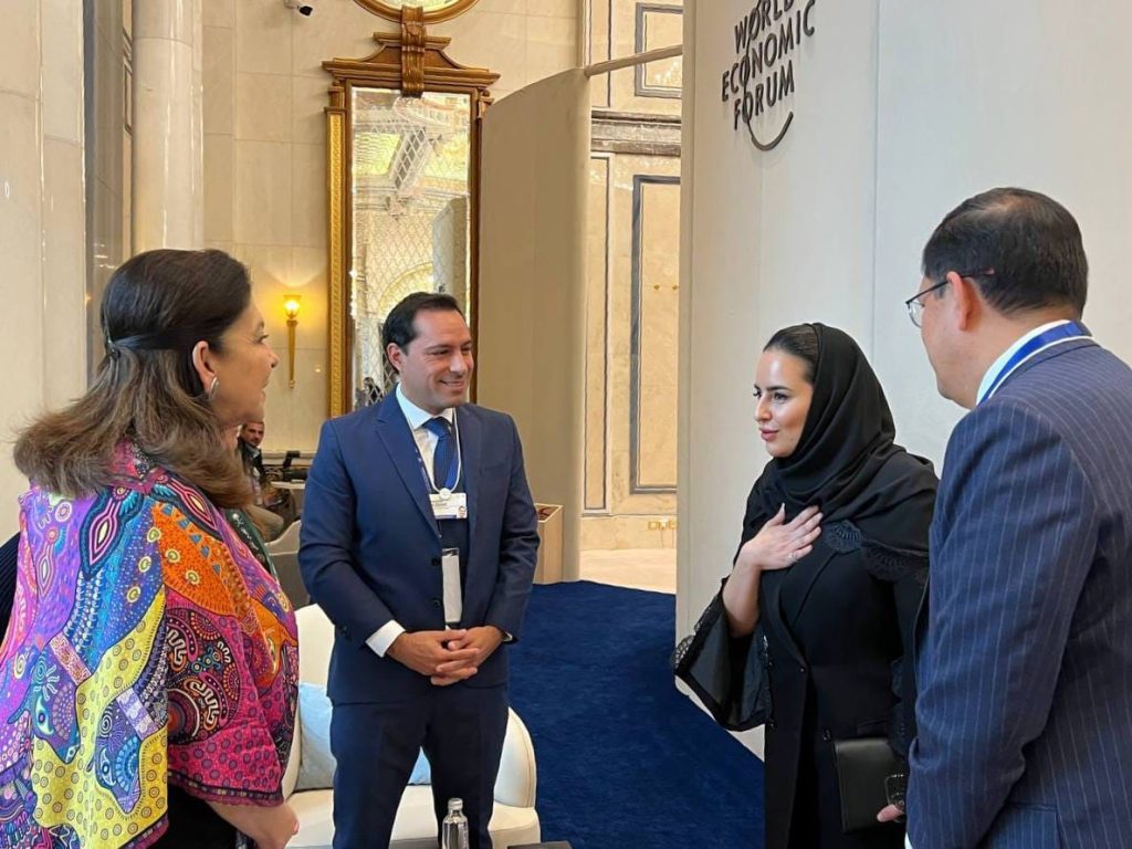 En el marco de la reunión especial del WEF, el Gobernador sostuvo un encuentro con Deemah AlYahya, secretaria General de la DCO, a fin de sumar esfuerzos para avanzar en la transformación digital, así como para fortalecer el desarrollo de la entidad, con el objetivo de explorar e incrementar las oportunidades en ese rubro para las empresas y productores yucatecos.