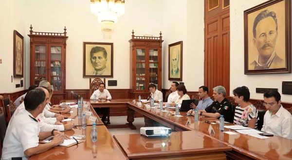 Mérida, Yucatán.- El Gobernador Mauricio Vila Dosal y la secretaria de Fomento Turístico, Michelle Fridman, se reunieron hoy con representantes de empresas de cruceros y autoridades municipales de Progreso y Mérida. La junta se realizó esta tarde en el Salón de la Historia de Palacio de Gobierno.