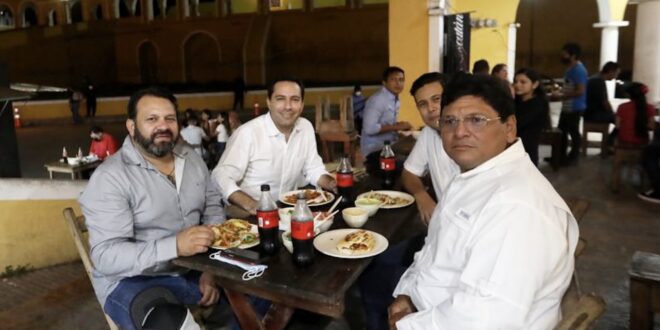 Luego de encontrarse con habitantes de este Pueblo Mágico y recibir sus solicitudes, Vila Dosal aprovechó para cenar unos tacos al pastor en el establecimiento “El Coyote”, en el mercado municipal, donde también platicó con comerciantes de este centro de abasto.