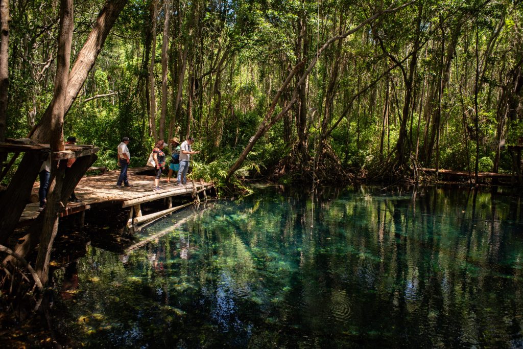 Durante la jornada, los funcionarios visitaron lugares emblemáticos como Elepetén, un cenote tipo aguada ubicado en medio de manglares que albergan especies como cocodrilos y aves nativas.