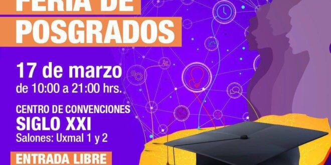 Representantes de instituciones de este nivel y centros de investigación promoverán su oferta de especialidades, maestrías y doctorados, en este foro, que se celebrará de 10:00 a 21:00 horas, en los salones Uxmal 1 y 2 del Centro de Convenciones “Siglo XXI”; la entrada es libre y se aplicará todos los protocolos sanitarios establecidos para controlar la pandemia por Coronavirus.