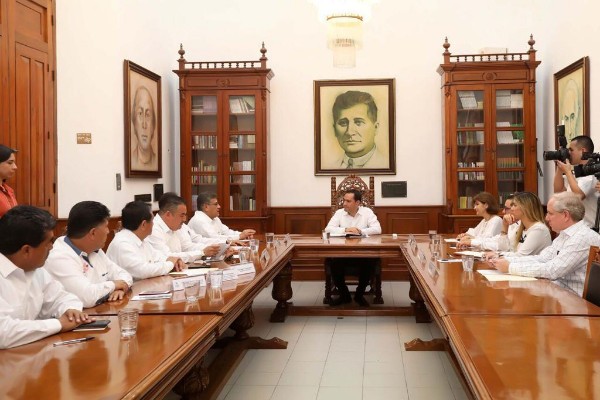 El Gobernador Mauricio Vila Dosal escucha los planteamientos de los dirigentes de la organización sindical
