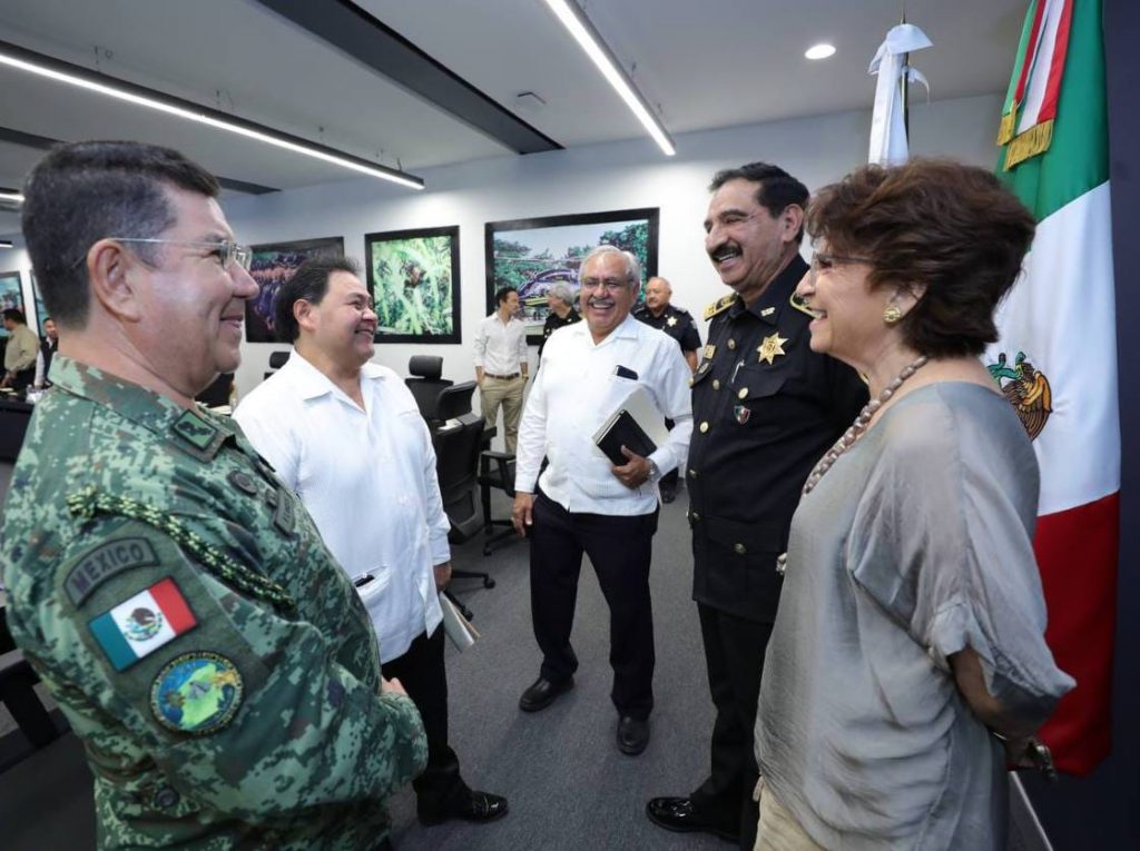 -La encargada del Despacho del Gobernador, María Fritz Sierra, encabezó una reunión de trabajo con el titular de la Secretaría de Seguridad Pública (SSP), Luis Felipe Saidén Ojeda y el comandante de la X Región Militar, General de División Ricardo Flores González, así como representantes de las fuerzas de seguridad federales y municipales.