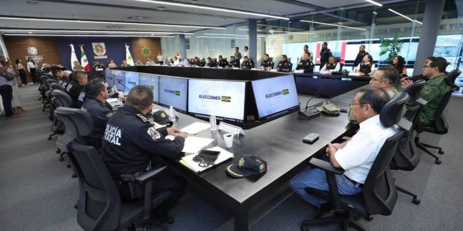 Mérida, Yucatán, 28 de mayo de 2024.- El Gobierno del Estado y las Fuerzas Armadas, en coordinación con las demás corporaciones policíacas en la entidad, reforzarán la seguridad y vigilancia en todo el territorio estatal durante la jornada electoral del domingo 2 de junio, con el propósito de que los yucatecos puedan ejercer su derecho al voto en un ambiente seguro y pacífico.