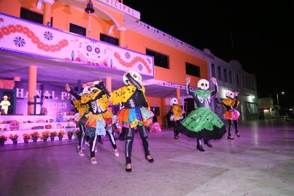 Kanasín, Yucatán a 28 de octubre 2023.- El alcalde Edwin Bojórquez Ramírez puso en marcha los festejos por el “Hanal Pixán 2023” en este municipio, que la noche de ayer viernes inició con exhibición de altares y la presentación del grupo folklórico “Ecos del Mayab”