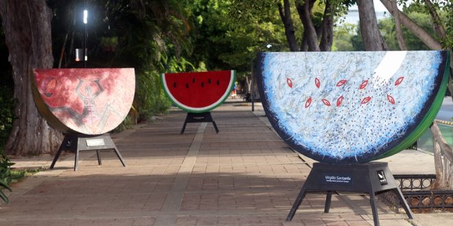 La decena de sandías del “Homenaje a Tamayo” permanecerán expuestas hasta finales del mes de octubre de este año en el Paseo de Montejo de Mérida.