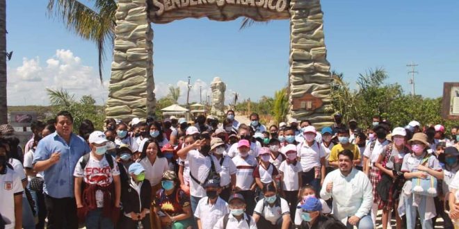 PROGRESO, 1 de octubre. – Gracias al convenio entre Segey y el H. Ayuntamiento que encabeza el alcalde Julián Zacarías Curi, más de 80 alumnos procedentes de Ticul, conocieron las instalaciones del Sendero Jurásico.