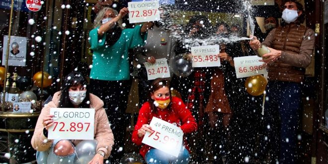 El número 72 mil 897 fue agraciado este martes con el primer premio de la lotería de Navidad en España, llamado “el Gordo” y dotado con 400 mil euros (488 mil dólares) por boleto, conocido en España como décimo.