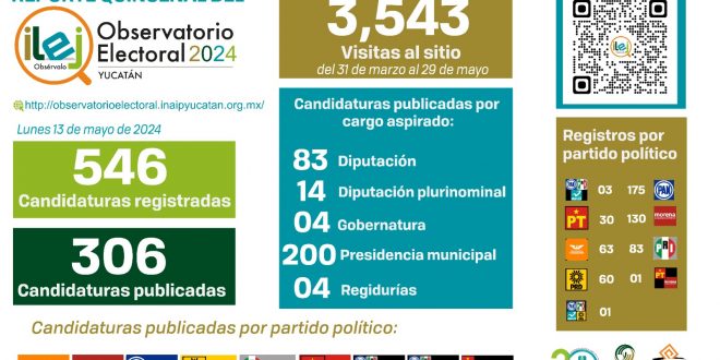 “A diferencia de la elección pasada, hemos visto un incremento notable en la publicación de información de las candidaturas en el Ilej, esto habla de un interés sustancial de las personas que aspiran a ocupar un cargo público por transparentar su información y comprometerse a combatir la corrupción, trabajar de manera transparente y proteger los datos personales de la población”, indicó Gilda Segovia Chab.