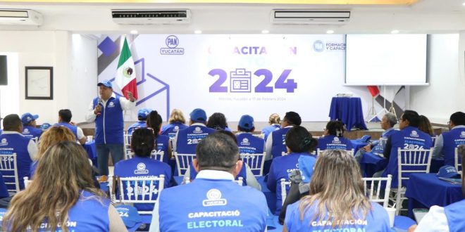 El sábado pasado se realizó el Curso Estatal de Formación de Capacitadoras y Capacitadores Electorales 2024, el cual fue organizado por la Secretaría de Formación y Capacitación, a cargo de Federico Santana Sonda. En la reunión también estuvo la secretaria general del PAN Yucatán, Ana Cristina Polanco Bautista.
