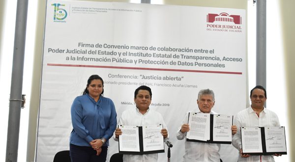 Lo anterior en el marco de la firma de un convenio general de colaboración entre el Poder Judicial y el Instituto Estatal de Transparencia, Acceso a la Información y Protección de Datos Personales (INAIP Yucatán) que establece las bases de cooperación entre ambas instituciones, para coordinar la ejecución de programas y actividades que contribuyan al cumplimiento de los objetivos establecidos en la Ley de Transparencia y Acceso a la información pública de Yucatán y promover acciones de capacitación, cultura, difusión y promoción sobre estos temas fundamentales para el conocimiento de la sociedad.
