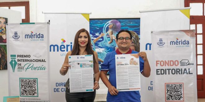 Mérida, Yucatán a 2 de agosto de 2023.- Con más beneficios y alcances para la comunidad literaria, el Ayuntamiento de Mérida que encabeza Renán Barrera Concha, a través de la Dirección de Cultura, abrió las convocatorias, en su edición 2023, del Fondo Editorial y el Premio Internacional de Poesía “Ciudad de Mérida”.