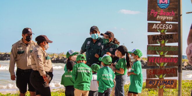 Cabe destacar que los cerditos de PigBeach cada día son más grandes y sanos, gracias a los cuidados que reciben del veterinario y elementos de la policía ecológica.