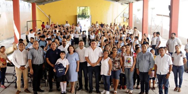 En Tecoh, en representación de Vila Dosal, el director general del Colegio de Bachilleres de Yucatán (Cobay), Marco Antonio Pasos Tec, realizó en días pasados la entrega de este importante apoyo a alumnos de la Escuela Primaria “Guillermo Palomino”, al tiempo que resaltó el compromiso y la visión del Gobernador con este tipo de programas que benefician no solo a las y los estudiantes, sino que también a la economía familiar, así como a los artesanos yucatecos que participan en la fabricación de las mochilas, zapatos, blusas, camisas y chamarras.