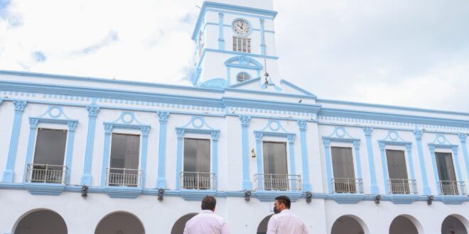 Progreso, Yucatán a 22 de diciembre 2021.- Por instrucciones del alcalde Julián Zacarías Curi, Personal del departamento de sistemas realizó mantenimiento al reloj de la torre del palacio municipal.