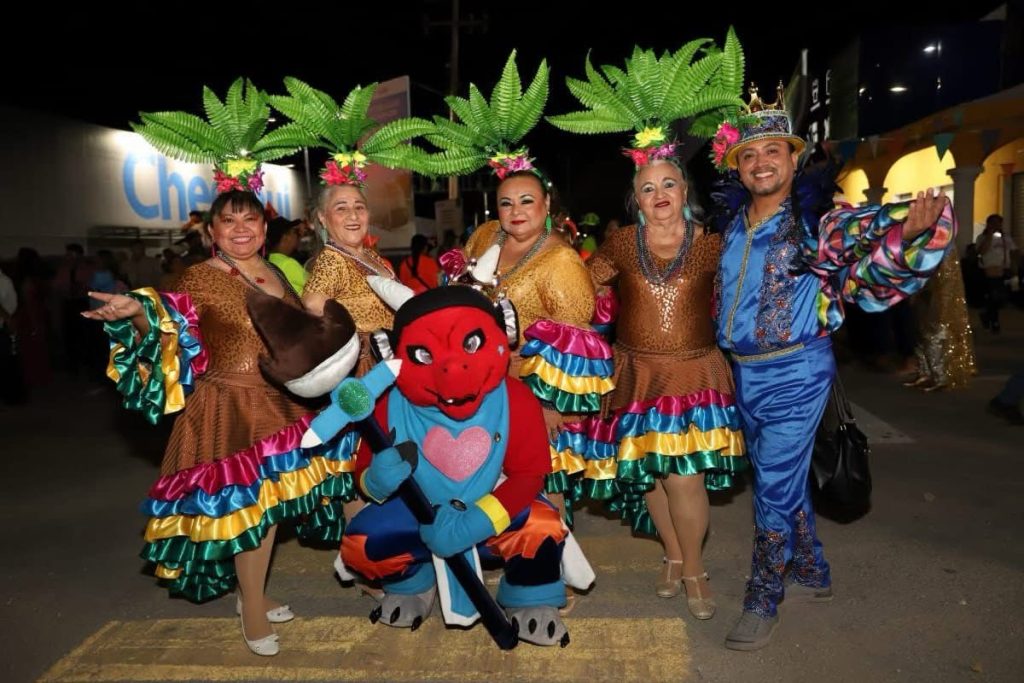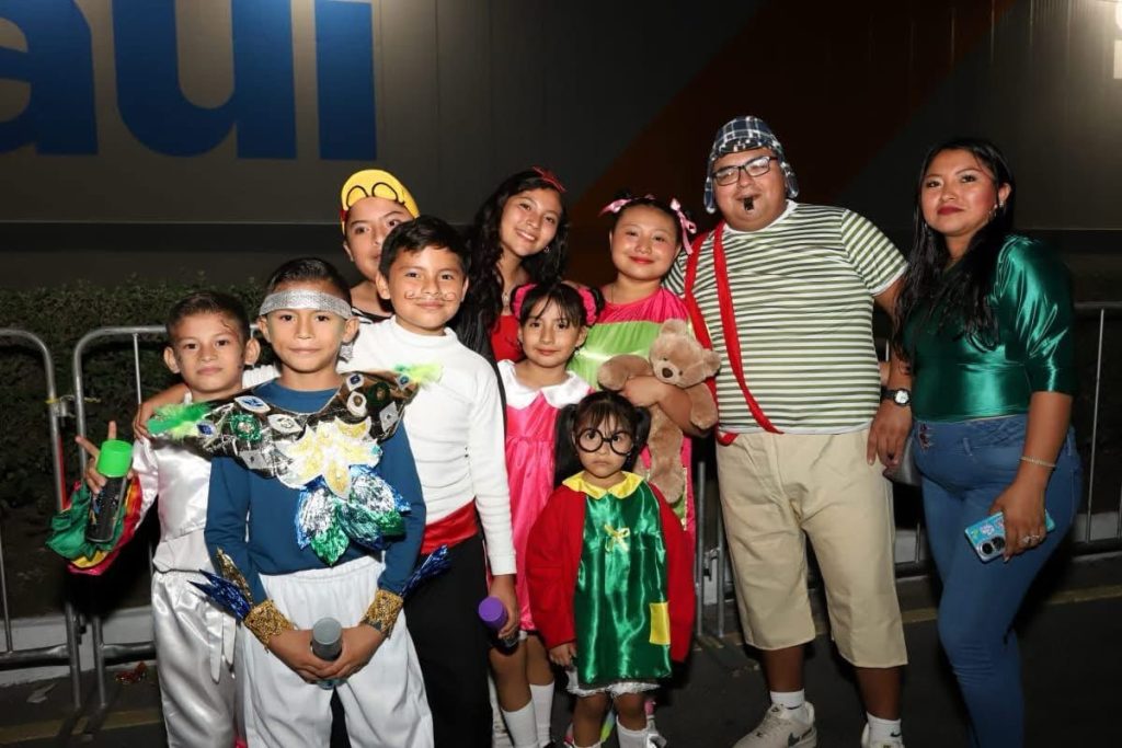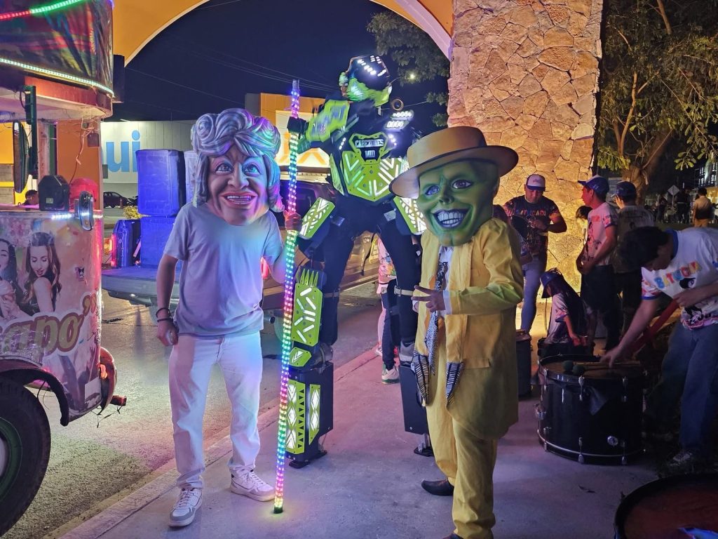 Un robot iluminado, el personaje de la Máscara, ‘Celia Cruz’ y la máscara antecedieron el carro alegórico del primer edil, quién estuvo acompañado de su esposa, Raquel Balam Rocha, titular del DIF y sus hijos.