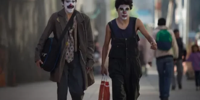 La referencia inmediata es la película Chicuarotes (2019), dirigida por Gael García Bernal. La cinta sigue la historia de Cagalera y Moloteco, dos adolescentes que intentan ganarse la vida como payasos en el transporte público, pero que terminan envueltos en una espiral de violencia y crimen.