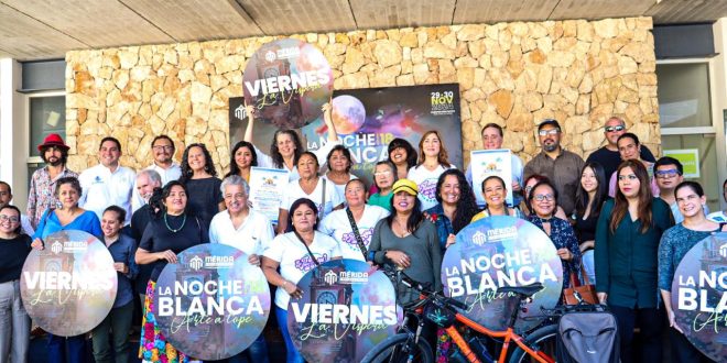 Mérida, Yucatán a 26 de noviembre de 2024.- La magia de La Víspera de La Noche Blanca tendrá una luz y protagonismo especial con los recorridos guiados por 37 galerías, actividades como la V Feria del Panucho, la Biciruta Nocturna y el talento de la comunidad artística por los cuatro puntos cardinales de Mérida.