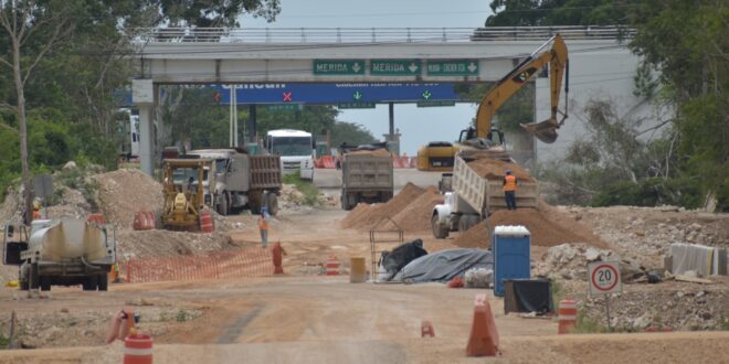 En el tramo 4, en la carretera Kantunil – Cancún, se realizan los trabajos de excavación y afinado de subrasante para la ampliación de la carretera. A la fecha, se tiene un progreso de 104 km de los 127 disponibles.