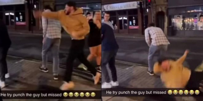 La escena se la llevó, según se observa en el video, el sujeto con la sudadera “llamativa”. Se alista para el combate callejero. Los puños están listos y dispuestos. ¿Por qué? No se observan los motivos.