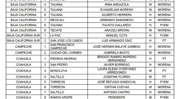 El dirigente nacional de Morena publicó una lista de los aspirantes a las diputaciones de mayoría relativa, en el caso de la Ciudad de México sobresalen nombres como Dolores Padierna o César Cravioto, quienes irán por los distritos 4 y 1 (de manera respectiva) Mientras que en el Estado de México figuran nombres como el de Leonardo Vilchis, actual alcalde de Ecatepec.