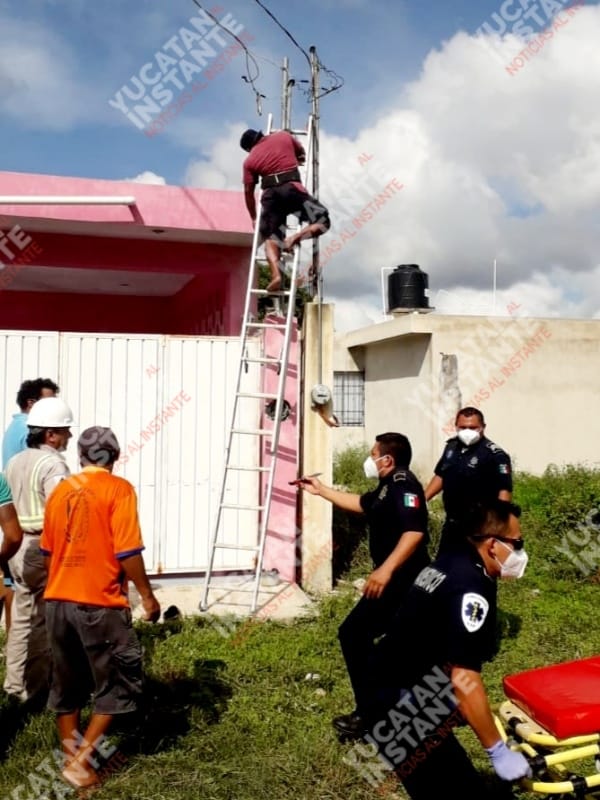 Electricista sufre descarga eléctrica y queda suspendido en el aire, en Hunucmá