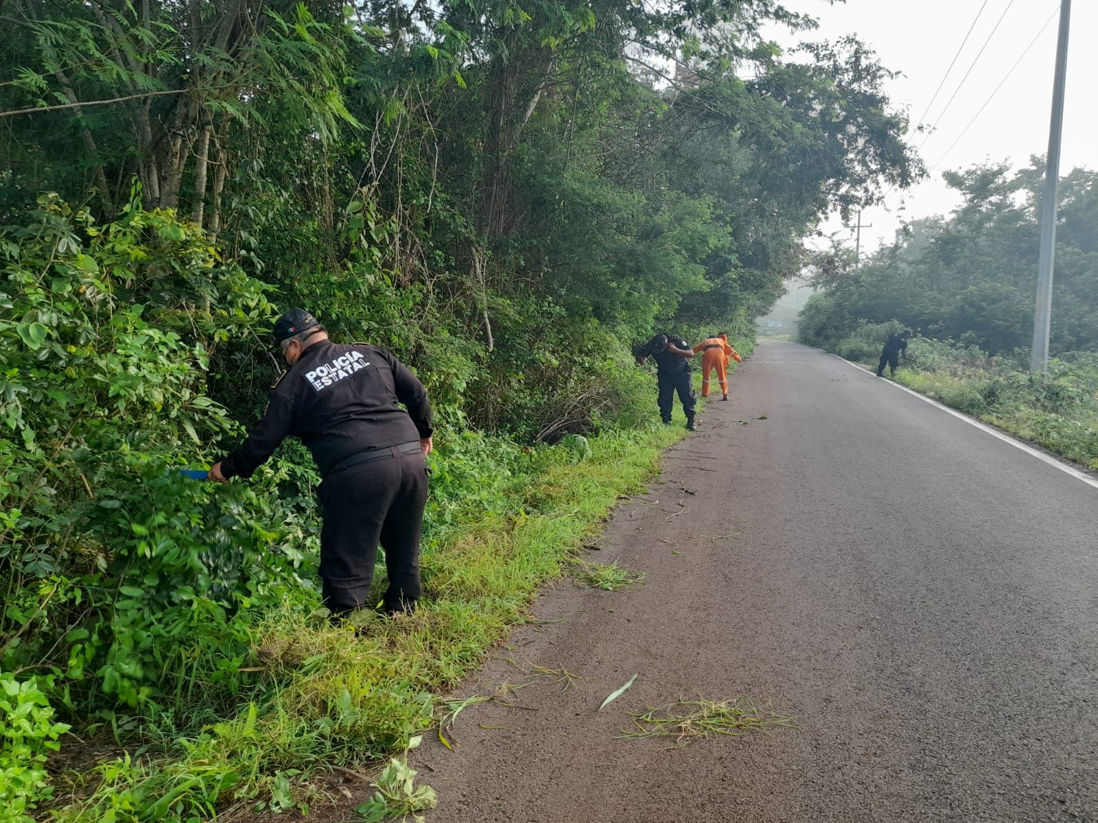 Agentes de dichas corporaciones del Gobierno estatal ejercieron las tareas en el tramo Tixméhuac-Kimbilá de Izamal, donde se está realizando la limpieza de la carretera, así como se verificó que, ningún árbol obstruya la visibilidad de los conductores y la limpieza en los señalamientos para evitar algún accidente.
