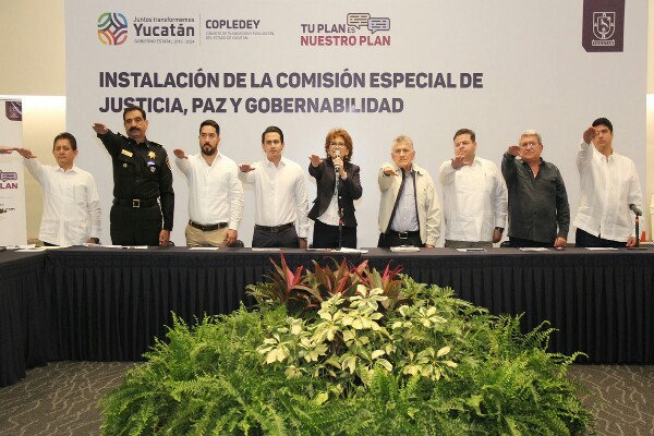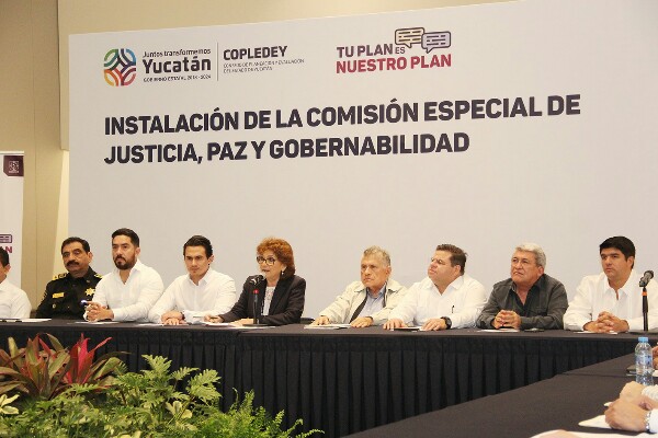 Mérida, Yucatán, 13 de febrero de 2019.- Con el fin de definir estrategias y líneas de acción que se integrarán al Plan Estatal de Desarrollo 2018-2024, se instaló la Comisión Especial de Paz , Justicia y Gobernabilidad, integrada por autoridades cuyas funciones están enfocadas a garantizar la seguridad y la certidumbre jurídica, presidido por la titular de la Secretaría General de Gobierno (SGG), María Fritz Sierra.