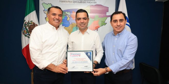 El presidente del Partido Acción Nacional (PAN), Asís Cano Cetina, y Renán Barrera entregaron a Elías Lixa su constancia como Coordinador de Acuerdos Interinstitucionales del Equipo. Este nombramiento se da en el marco de los trabajos que se impulsan desde Acción Nacional con la plataforma “Te Escuchamos Yucatán”, la cual tiene como objetivo recibir las propuestas e ideas de los ciudadanos para integrar a la plataforma política del partido para el año próximo.