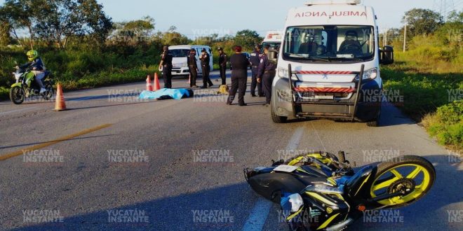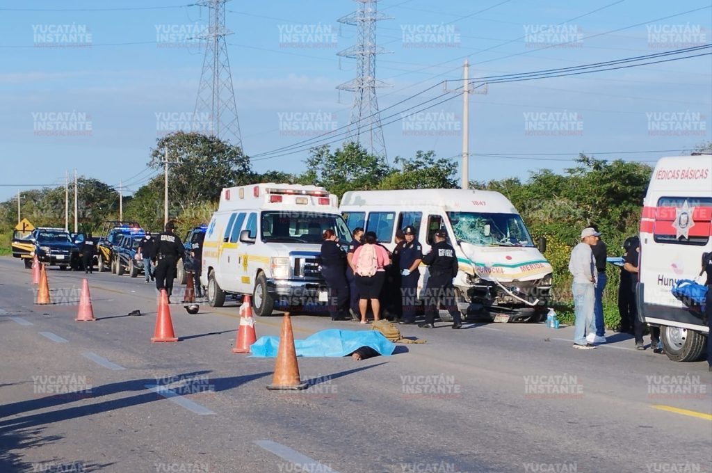 Hunucmá, Yuc., a 5 de enero 2023.- Una trágica muerte encontró un elemento de la Secretaría de Seguridad Pública identificado como Regaar Esquivel, de 44 años que iba a bordo de una motociclista con dirección a sus labores, tras ser impactado por alcance por un taxi colectivo de la ruta Mérida-Hunucmá.