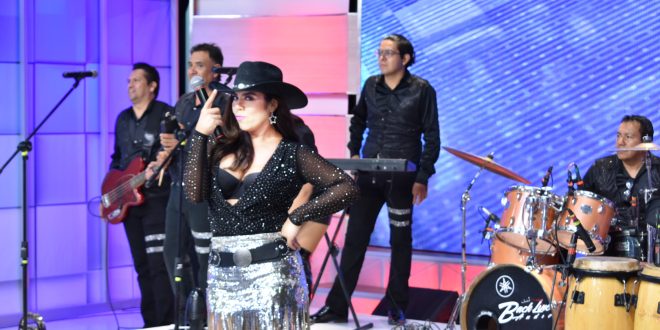 Emily en Proyéctese acompañada por el Grupo Duplicador interpretando sus más grandes éxitos gruperos.