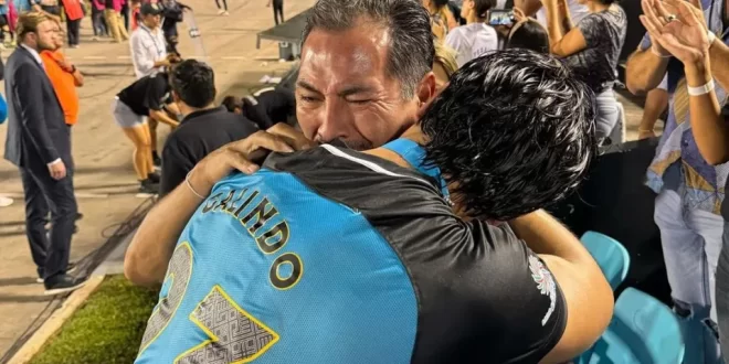 Una vez que terminó la ceremonia de premiación, Benjamín Galindo Cruz fue a buscar su padre para abrazarlo. El Maestro no pudo con la emoción y se soltó a llorar junto a su hijo, quien fue el encargado de levantar el título conseguido por las Iguanas.