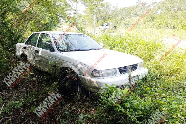 CELESTÚN, Yuc., 19 de octubre de 2019. – Esta tarde la joven Sinaí del Rosario Zapata Cocom que se dirigía al vecino puerto le tocó de malas al pinchar una rueda delantera de la nave Nissan, causando que pierda el control y volcara.