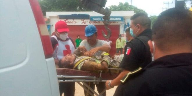 El infortunado trabajador sufrió una fuerte descarga eléctrica que le quemó el brazo derecho y resultando con quemaduras de tercer grado, por lo que probablemente pierda la extremidad, según el reporte.