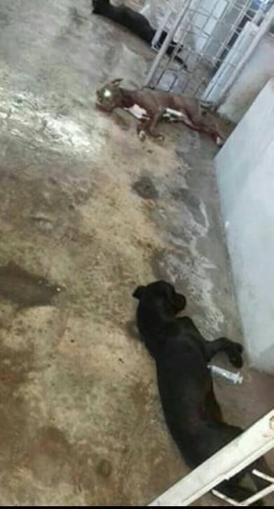 En las imágenes se puede apreciar a los caninos que fueron sacrificados y tirados en el piso ya sin vida.
