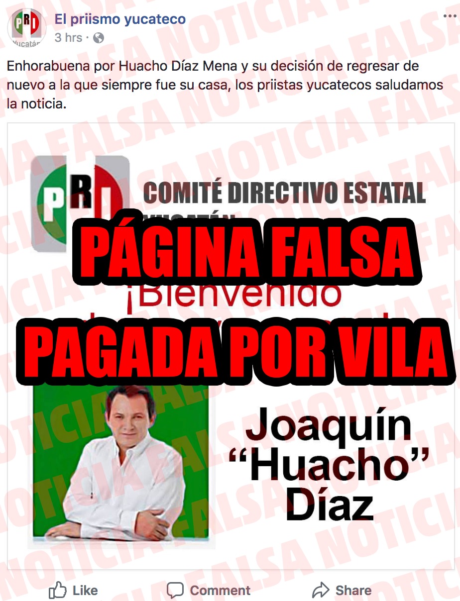 Estás cuentas falsas reciben millonarias cantidades para que a través de su publicidad desvirtúen a Huacho Díaz quien hoy hizo pública su renuncia al PAN y se sumó a Morena por las mentiras que Mauricio Vila le vendió durante varios meses.