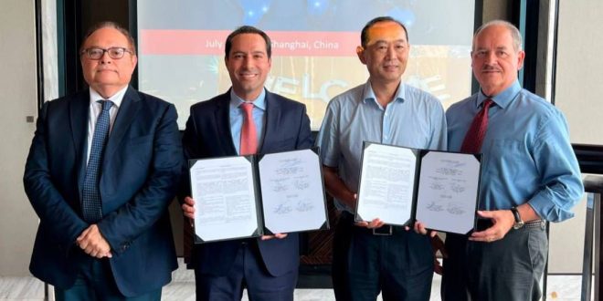 Shanghai, China, 22 de julio de 2023.- La misión comercial que realiza el Gobernador Mauricio Vila Dosal por el gigante asiático para atraer más inversiones al estado que se traduzcan en mayores fuentes de empleos mejor pagados para los yucatecos, rinde frutos, al dar como resultado la firma de una carta intención con las empresas Xinyatong Metal Manufacture y Buchanan Group para el establecimiento de una planta de manufactura en Ticul que podría generar hasta 200 nuevas plazas laborales en Yucatán.