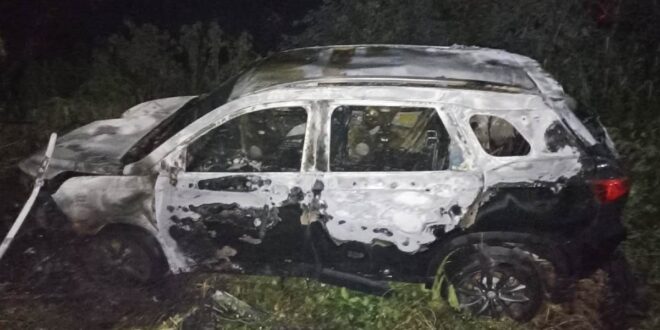 TIZIMÍN, Yuc., 18 de noviembre 2021.- Una camioneta fue consumida en su totalidad por el fuego, luego de salirse de la carretera en el tramo del periférico Mérida-Río Lagartos porque el conductor perdió el control del volante.