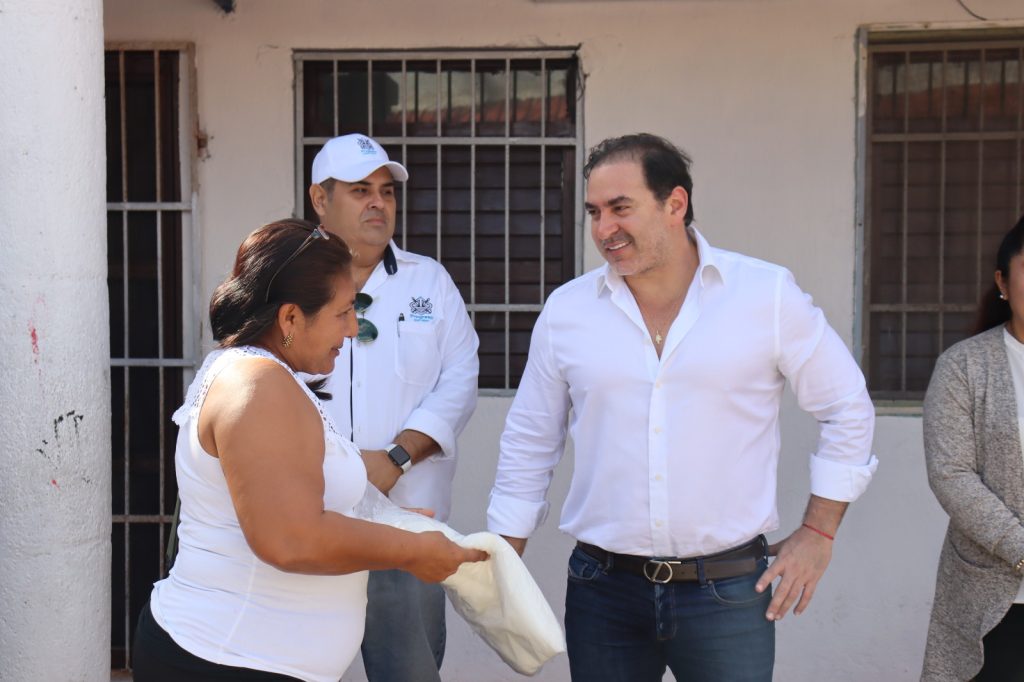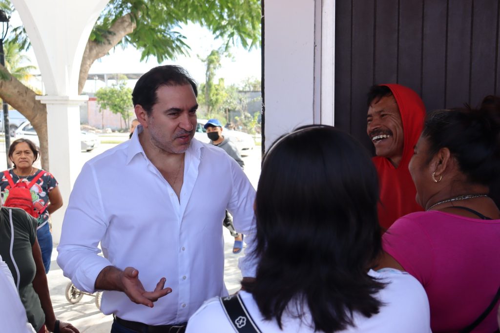 Progreso, Yucatán a 13 de febrero de 2023. El alcalde Julián Zacarías Curi inició su agenda de trabajo, visitando nuevamente a los habitantes de la comisaría de Flamboyanes, esta vez, para entregarles pabellones, los cuales harán frente a los mosquitos.