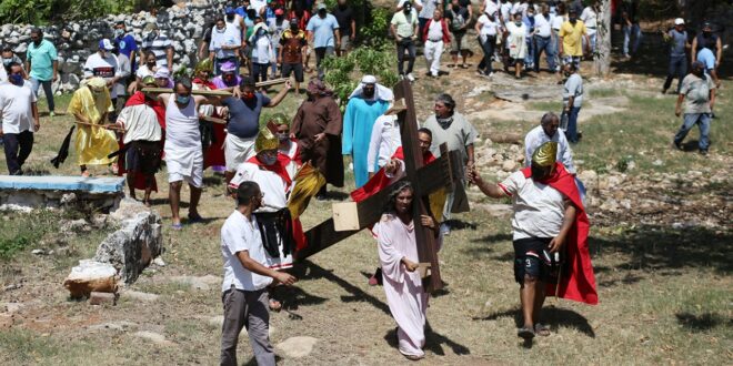 Mérida, Yucatán a 15 de abril de 2022.- Este Viernes Santo, en el Centro de Reinserción Social Cereso) de Mérida se revivió la pasión y muerte de Cristo con la escenificación del tradicional Vía Crucis.